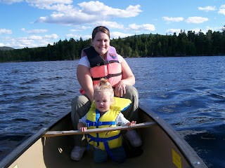 Monday was Labor Day and Craig had got sick the night before when we got home. We had a chill morning and slept it, but still wanted to go and play. We made a yummy breakfast and headed to Greenville (Moosehead Lake) to play. We ended up renting a canoe for the day and brought along our fishing gear. Jaycee did SO good in the canoe. She wanted to play in the water so I let her put her hands out as we rowed. She's really into singing songs so we sang songs & made up a song...Row, Row, Row your canoe, gently in the lake; Merrily, Merrily, Merrily, Merrily, isn't Maine great! I know, it's cheesy---the things we do to make our kids happy :) We canoed to a beach area, had lunch, and fished. We didn't catch anything, but sure was fun spin casting. Now I'm itching to go fishing. I'm sure Craig loves that! On our way home we were thinking of what to do for dinner, and decided to drive even further to go to Texas Roadhouse. They have the best rolls, salad & onion blossom! It was super tasty. I found out recently that there is a Target in Bangor so we had to stop on the way home to Clearance shop. I love finding a good deal. We got 4 shirts, 2 pair of shorts, 1 capri, a sweat shirt, and sweat pants for Jaycee all for $22.